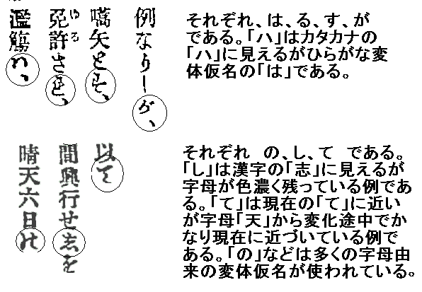 書籍名:谷風叢話 著者:内藤弥一郎著 発行年:明27.11 仙台:耕文堂, タイトル:大阪勧進相撲 ページ:9ページ 大阪勧進相撲 大阪勧進相撲の濫觴は、人皇第百十四代 東山天皇の元禄五年、袋屋伊石工門と云ひる者願ひ出て、初めて南掘江高木屋橋筋立花通りに興行せしを以て鏑矢(はじめ)とす、其の時の場所は四十間四方にて、入口は四箇所なりし。其後大山次郎右衛門なる者願び出でし所、此の時外にも願人ありたれば、大山にのみ許可(うる)し難き事情あるに因り、則ち願人等をして抽選せしめ、共の当選者に許可(きょか)せられ、勧進元と定められたり、此の事永く例となり、毎年十二月二十日を以て、大阪町奉行所に於て抽選を行ひ、勧進元を定めらるヽ事となれり、而して場所は最初は堀江と。難波新地の両所と為し、隔年に興行するの例なりしが、追々堀江は土地の繁盛を来ずに従がひ、人家稠密の地となり興行の余地なきに至りたるを以て、追々は専ら難波新地にのみ。興行することになれり。 ご参考 変体仮名 江戸時代以前は仮名が現在のように定まっておらず、色々な仮名が用いられた。 明治になっても少し変体仮名がのこっており、1900 年(明治 33)の「小学校令施行規則」で統一された。